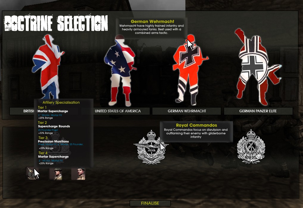 Europe in Ruins takes the fast paced, intense and surreal combat that you've come to know from Company of Heroes and combines it with persistent environment, ever changing meta-gameplay and ongoing war. The modification sees you creating and commanding your very own battalion in which you can customize with any units and upgrades you wish; CoH strategy has never had so much choice. Not only do you get to build up your battalion, but as you units battle, they will gain and retain all the experience they earn, carrying over from battle to battle; going from green to elite!
